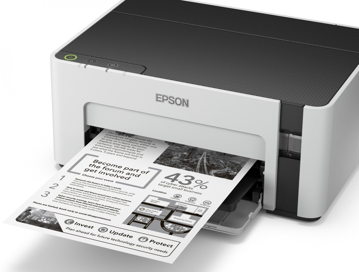Монохромна Фабрика друку Epson М1100 - це компактний і зручний у використанні струминний принтер з великими місткостями для чорнила об"ємом 120 мл замість картріджів. Завдяки своїй унікальній конструкції Фабрика друку Epson M1100 дозволяє друкувати документи з рекордно низькою собівартість, а за рахунок використання пігментного чорнила відбитки миттєво висихають і не розмазуватися при попаданні води або механічній дії.