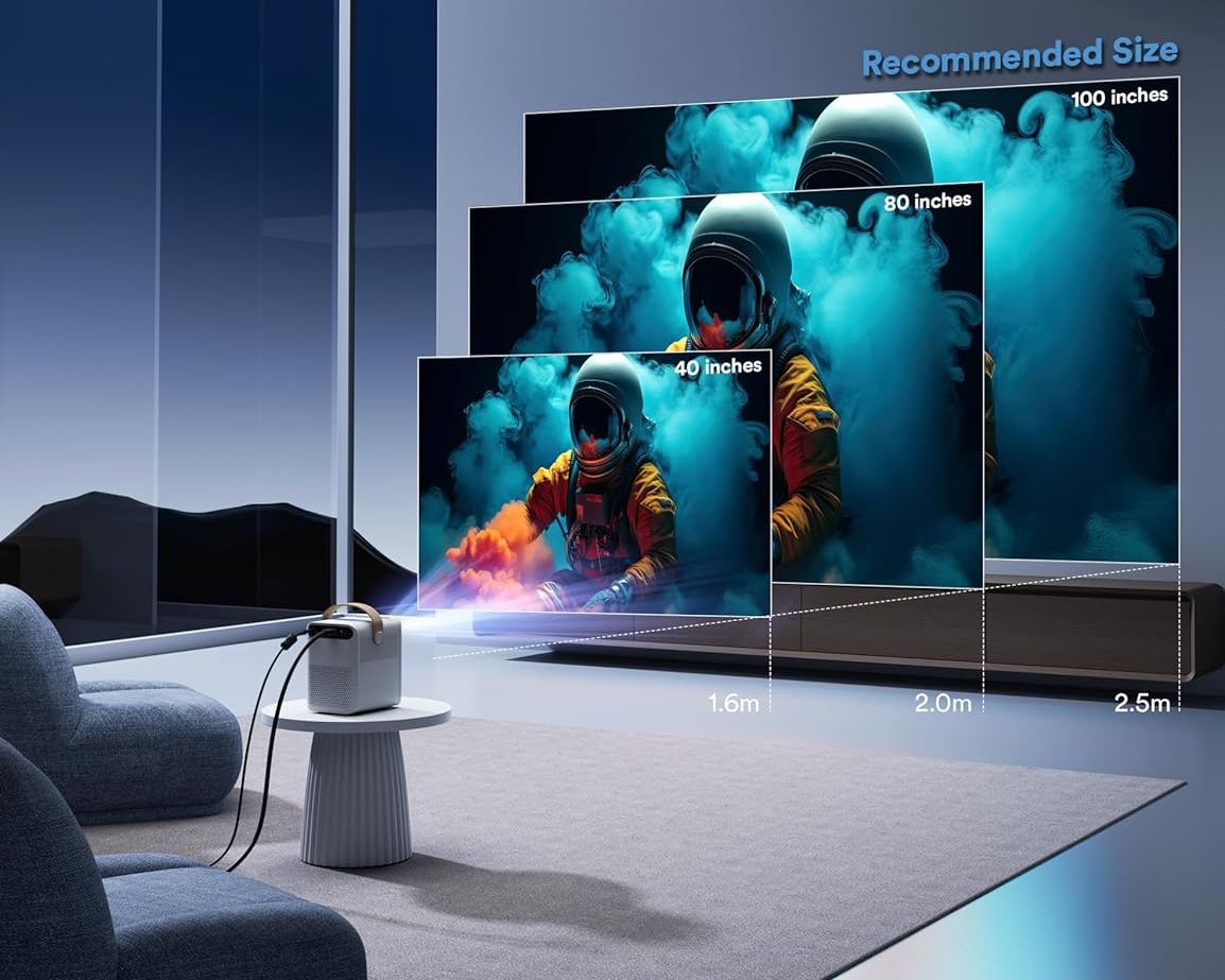 WOLFANG WP01 підтримує корекцію трапецієподібних спотворень ±40°, що дозволяє легко налаштовувати зображення для ідеальної геометрії. Проекційний екран можна налаштувати в діапазоні від 40 до 200 дюймів, створюючи ефект занурення. Функція масштабування 50% дає змогу змінювати розмір екрану без фізичного переміщення проектора, що особливо зручно для використання в обмеженому просторі. Така універсальність дозволяє насолоджуватися якісним зображенням у будь-яких умовах.