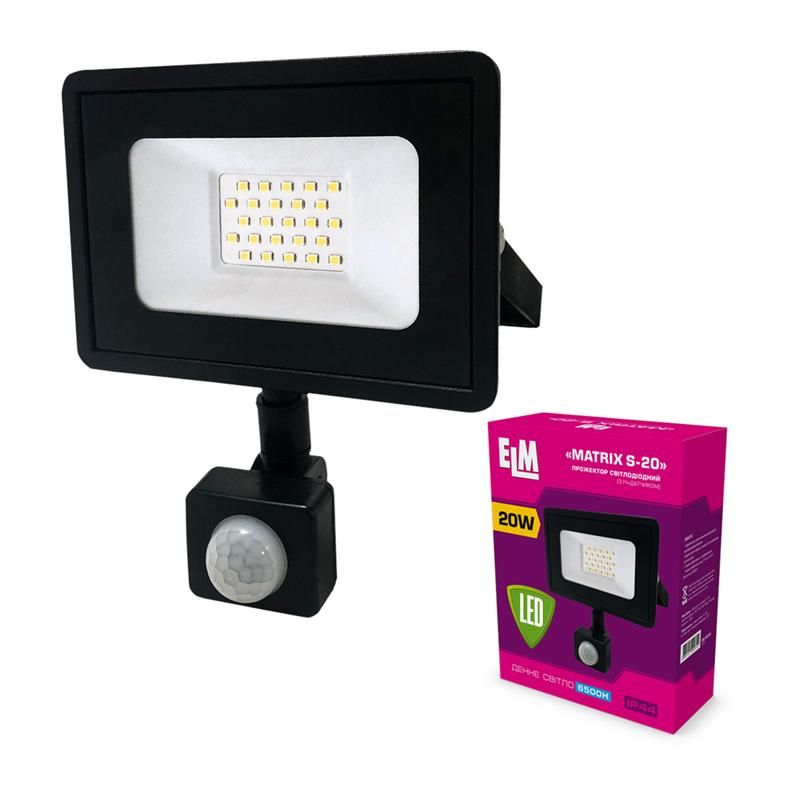 Прожектор світлодіодний з датчиком руху (ІКД) ELM Matrix S 20W 6500К 26-0035