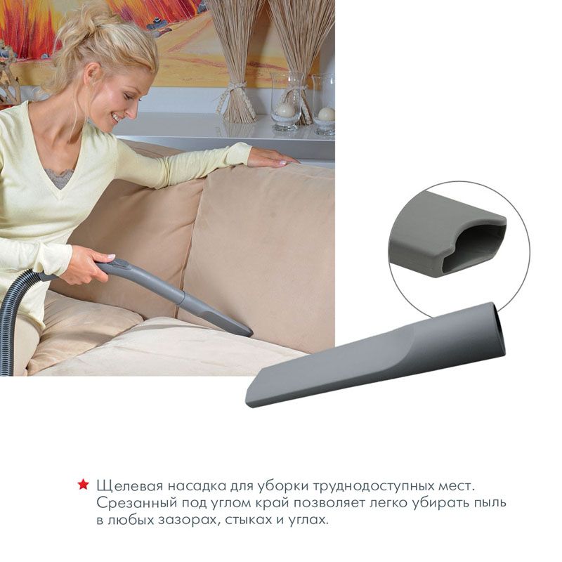 Пилосос відмінно справляється також з сухим і вологим прибиранням килимів і м"яких меблів. Він промиває килими до основи ворсу, знищує бруд і плями і надає текстильним поверхням свіжому, оновленому вигляду.