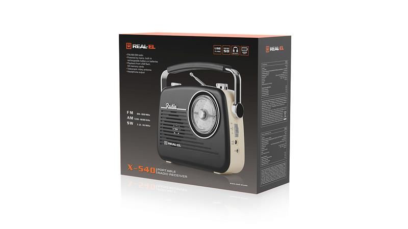 Портативний радіоприймач REAL-EL X-540 — ваш ідеальний супутник для музичних пригод! Цей компактний пристрій не тільки забезпечує високоякісний прийом FM/AM/SW радіостанцій, але й дозволяє відтворювати улюблену музику з USB flash або SD карт пам’яті. Завдяки літій-іонному акумулятору та можливості додаткового живлення від батарейок типу D/LR-20, ви зможете насолоджуватися чистим і яскравим звуком де завгодно і коли завгодно. Телескопічна поворотна антена гарантує стабільний прийом, а вихід на навушники дозволяє слухати музику без зайвого шуму.