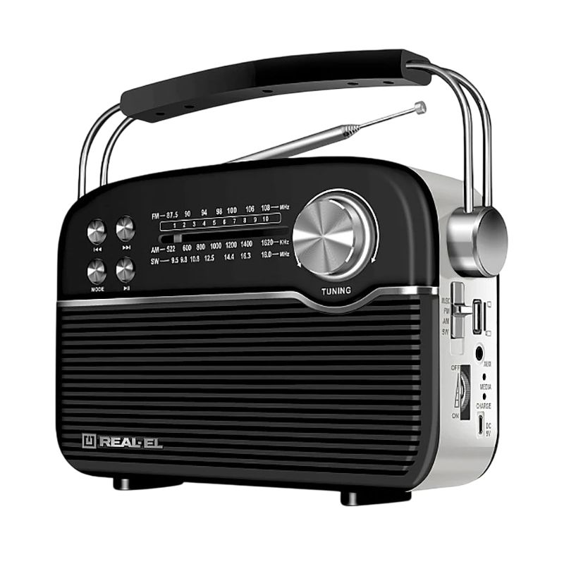 Звичайно ж, він може добре приймати сигнал радіостанцій в будь-яких діапазонах - від FM до AM і SW. Але ж на дворі XXI століття — сучасні портативні пристрої мають вміти набагато більше. Інженери REAL-EL знають про це як ніхто інший, тому додали в пристрій і можливість відтворювати аудіо зі смартфона або іншого гаджета за допомогою Bluetooth і функцію відтворення музичних файлів з USB-накопичувача або карти пам’яті microSD. По суті, це повноцінна портативна акустика, яка просто більше орієнтована саме на прослуховування радіо.