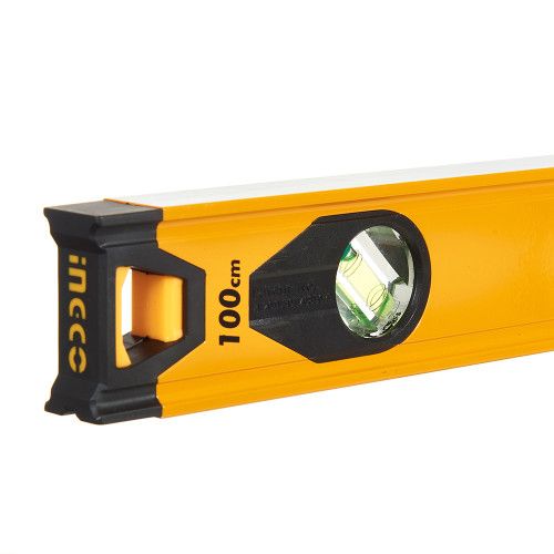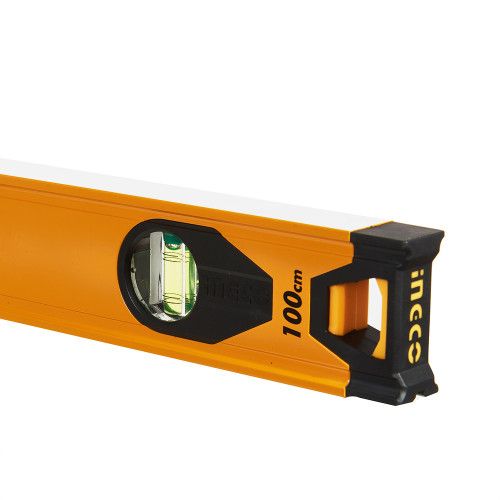 Будівельний алюмінієвий рівень 100 см INGCO INDUSTRIAL оснащений трьома очками.