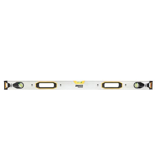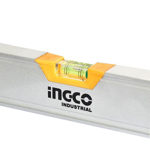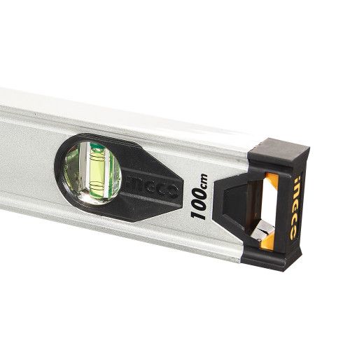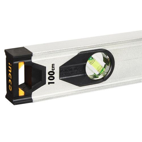 Будівельний алюмінієвий рівень 100 см INGCO INDUSTRIAL оснащений трьома очками та призначений для виявлення відхилення поверхні по горизонталі й вертикалі.