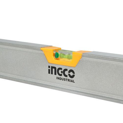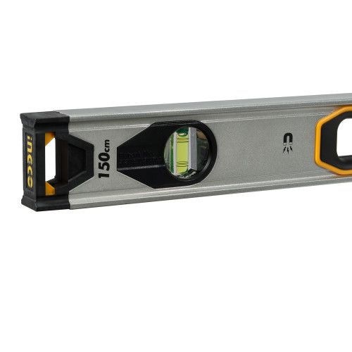 Будівельний алюмінієвий рівень 150 см INGCO INDUSTRIAL оснащений трьома очками та призначений для виявлення відхилення поверхні по горизонталі й вертикалі.