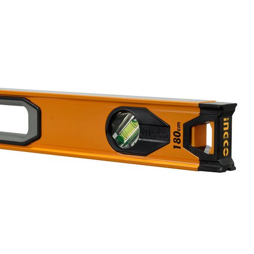 Будівельний алюмінієвий рівень 180 см INGCO INDUSTRIAL оснащений трьома очками.
