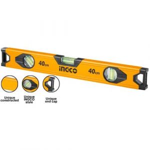 Будівельний алюмінієвий рівень 400 мм INGCO — інструмент для виявлення відхилення поверхні по горизонталі та вертикалі.