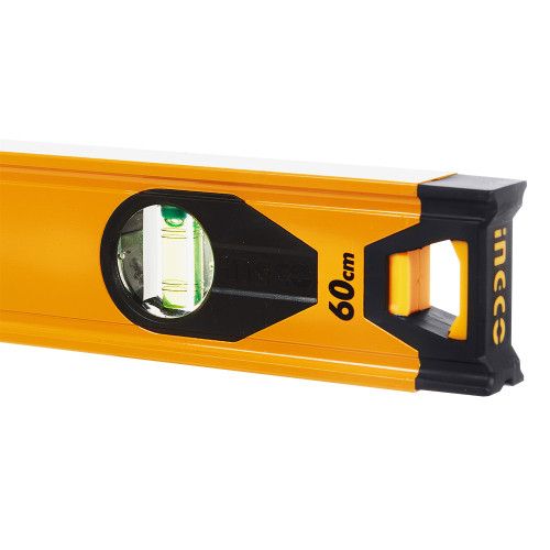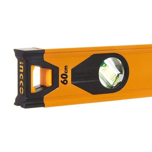 Будівельний алюмінієвий рівень 60 см INGCO INDUSTRIAL оснащений трьома очками.