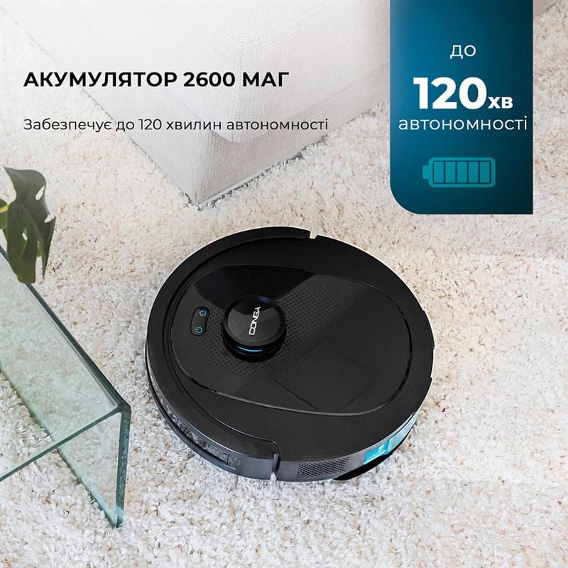 Робот-пилосос Cecotec Conga 7490 оснащений акумулятором ємністю 2600 мАг, якого вистачає на 120 хвилин безупинного прибирання кожного куточка вашого будинку.