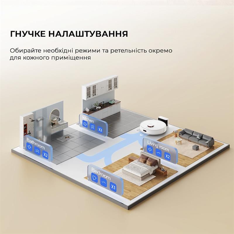 З додатком Dreamehome ви можете легко налаштувати свій досвід збирання. Отримайте повний контроль над налаштуваннями прибирання відповідно до домашньої обстановки та розкладу. Легко регулюйте рівень води та всмоктування для автоматичного очищення. Оптимізуйте продуктивність вашого робота та процедуру очищення за допомогою інтуїтивно зрозумілого 2D-картування та розширених функцій нашої програми.
