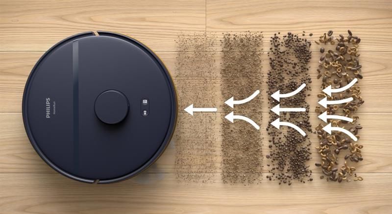 Робот автоматично підвищує потужність всмоктування, коли заїжджає на килим, щоб збирати дрібний пил, який накопичується всередині килима.