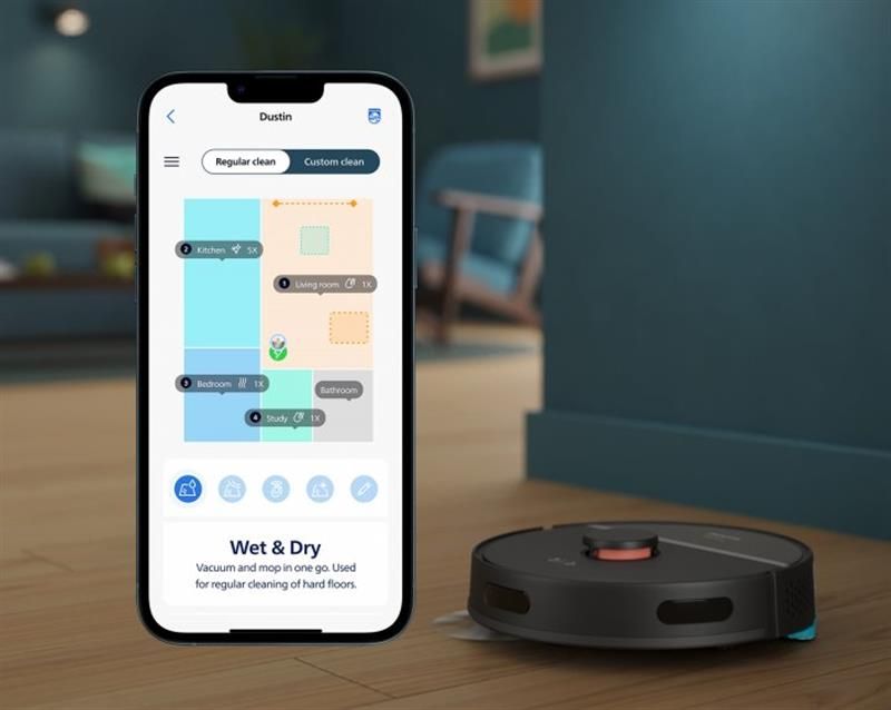 Робот виготовлений із високоякісних матеріалів, завдяки чому вони легко впишуться в інтер’єр вашого будинку. Додаток для роботи Philips HomeRun є зручним та інтуїтивно зрозумілим, що ідеально підходить для користувачів-початківців. Він містить покрокові інструкції та корисні відеоролики, які допоможуть вам використовувати роботу максимально ефективно. Додаток взаємодіє з роботом, контролюючи його роботу, надаючи звіти та оновлюючи інформацію про результати прибирання, де б ви не знаходилися, і показуючи в реальному часі, де робот виконав прибирання.