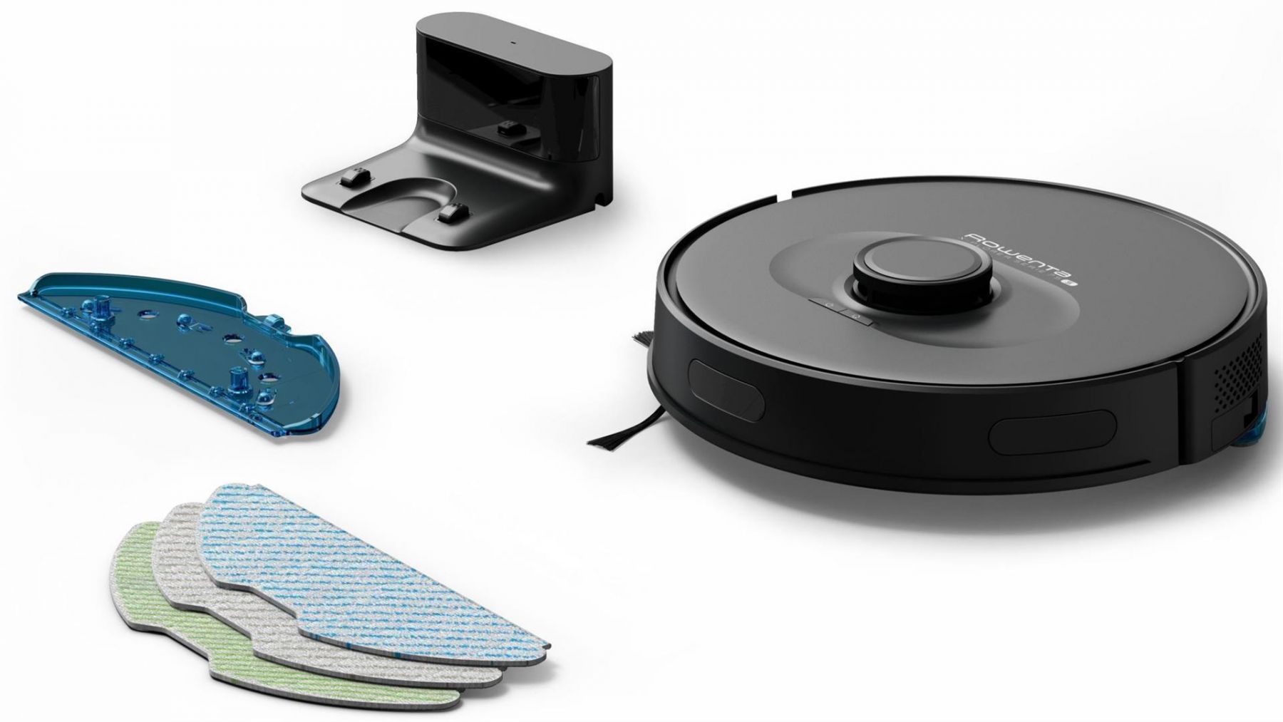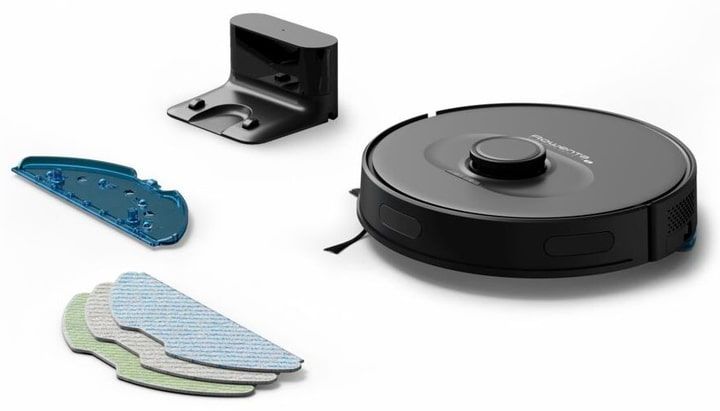 Комплектація:робот-пилосос, зарядна док-станція, HEPA-фільтр, бічна щітка, насадка з мікрофібри / для вологого прибирання (2 шт), резервуар для води, інструкція