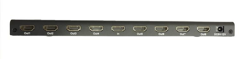 HDMI розгалужувач має вбудований підсилювач, що дозволяє передавати сигнал 4Кх2К@30Гц до 15 метрів, 1080р@60Гц до до 25 метрів. Підтримує дозволу екрану до 4Kx2K@30 Гц, 1080P@120 Гц, 1080P і 3D@60Hz.