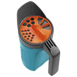 Розкидач ручний GARDENA S - компактний інструмент для рівномірного розкидання гравію, солі, піску, гранульованих добрив, насіння. Місткість контейнера становить 1,2 л, але модель може вміщувати приблизно 1,7 кг піску або 1,4 кг солі, або гравію 1,65 кг, або 1,3 кг добрив.