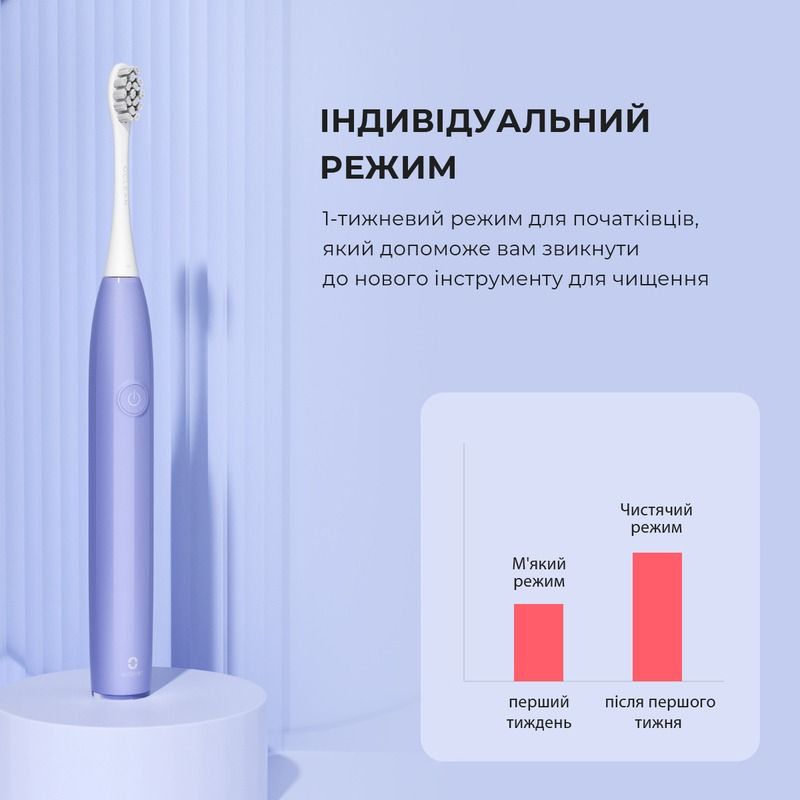 2 режими чищення: «Ніжний» та «Чистий» для задоволення щоденних особистих уподобань, ефективного видалення залишків їжі, глибокого очищення лінії ясен та зубів для яскравішої посмішки