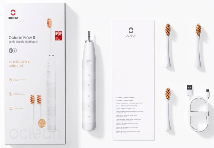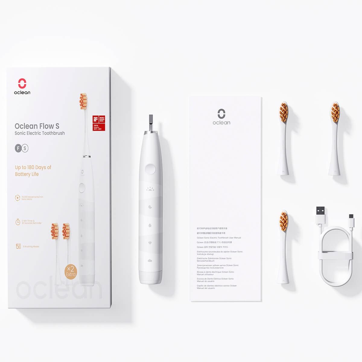 Oclean Flow S глибоко очищає зуби завдяки 76 000 рухів за хвилину. Батареї вистачає на 25 тижнів. Flow S поставляється із дорожнім футляром.