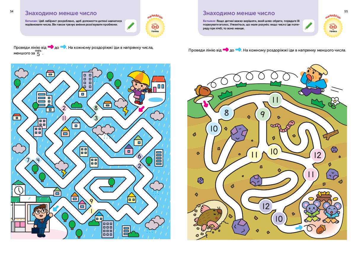 У вправах книжки «Gakken. Розумні ігри. Розвиток здібностей. Цифри. 4–6 років» дитині пропонується: