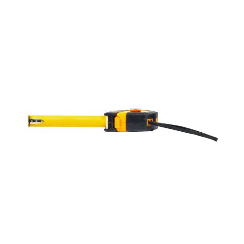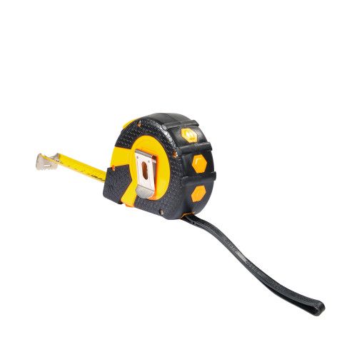 Надійний фіксатор на корпусі служить для зупинки та скручування стрічки. Для зручності у використанні корпус рулетки покритий гумою.