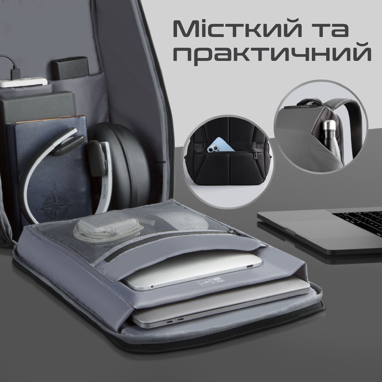 Promate UrbanPack-BP - міський Eco-Friendly рюкзак, виготовлений із використанням переробленого океанічного пластику. Стильний та практичний компаньйон на кожен день, при покупці якого ти робиш нашу планету чистішою!