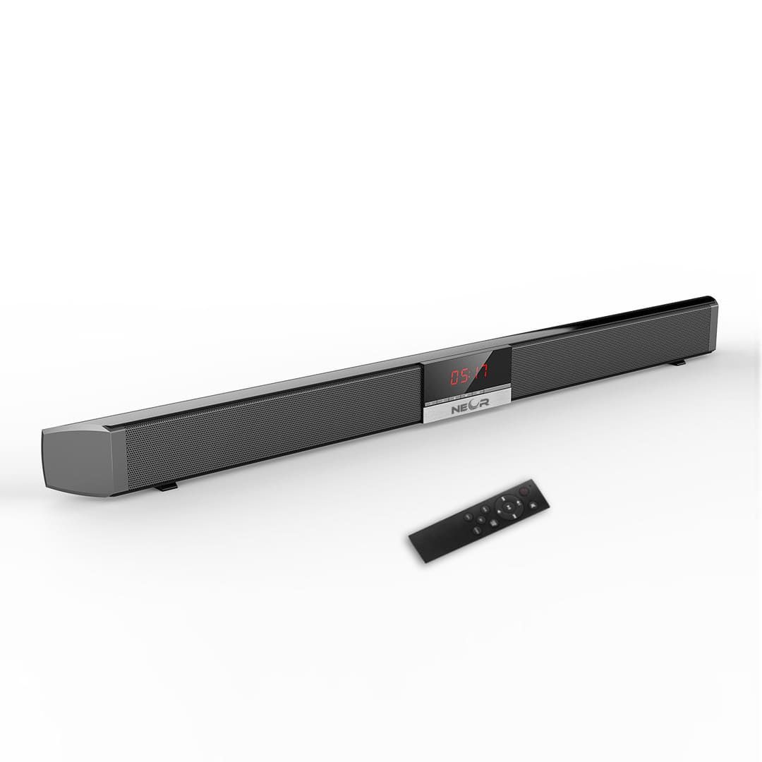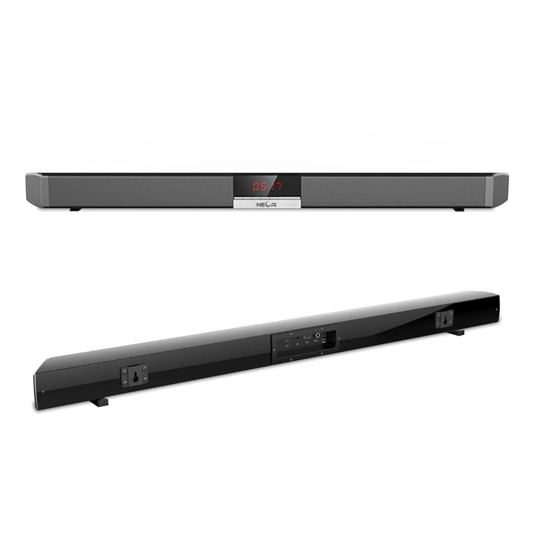 Зовнішній вигляд саундбару NEOR відповідає найвищим стандартам класичного дизайну, що дозволяє лаконічно розмістити його хоч вдома, хоч в кафе, хоч у навчальному закладі. Всі роз’єми розміщені на задній панелі, в тому числі й USB. Це дає можливість легко приховати кабелі з’єднання, якщо ви обрали саме дротовий вид підключення. Саундбар з легкістю можна підключити до смартфона, телевізору, комп’ютеру чи сенсорної панелі.