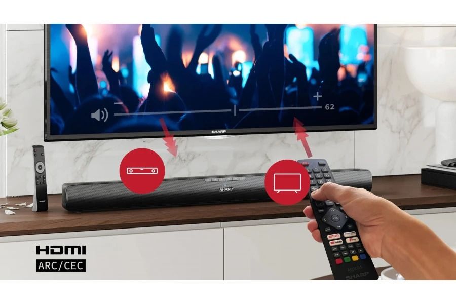 SHARP HT-SB100 - це високоякісна звукова панель, яка забезпечує потужне та насичене звучання для вашого телевізора. Завдяки потужності 75 Вт та підтримці 2.0-канального стереозвуку, ця панель здатна перетворити ваш домашній кінотеатр на справжній аудіоцентр. Завдяки підтримці HDMI ARC/CEC, підключення звукової панелі до телевізора стає простим та зручним, і ви можете керувати нею за допомогою пульта від телевізора. Bluetooth 5.1 забезпечує бездротове потокове передавання аудіо з вашого смартфона або планшета, а оптичний вхід дозволяє насолоджуватися цифровим звуком найвищої якості.