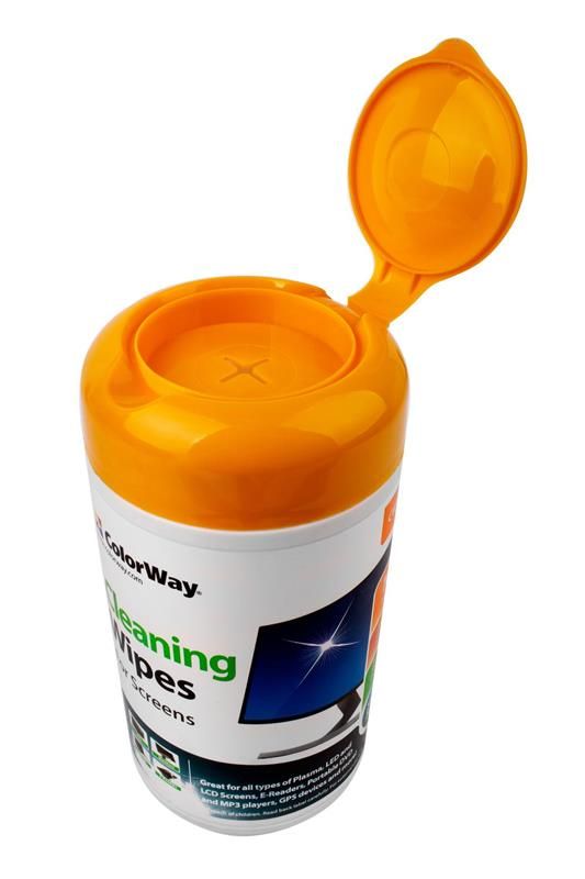 Серветки ColorWay для чищення екранів, моніторів, ноутбуків, телевізорів, смартфонів, комп"ютерів, периферії та іншої офісної та домашньої електроніки. Призначені для вологого чищення сильних забруднень, що в'їдаються плям, потертостей, пилу та інших плям різного ступеня забрудненості.