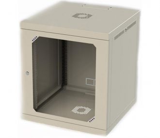 Шафа настінна, розбірна, зі знімними бічними стінками. У комплекті 2 пари рэков. Дверці з перфорованою сіткою. Можливість установки 120мм вентилятора. Введення кабелю ззаду, згори, знизу.Шафа кріпиться на стіну за допомогою анкерів або на монтажну планку. Збірка шаф максимально спрощена завдяки заздалегідь запресованим кріпильним елементам. Для складання досить викрутки.