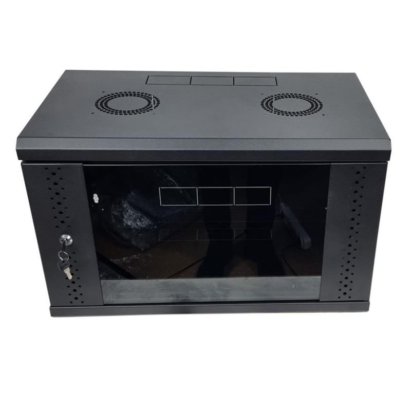 Шафа настінна 6U з економ лінійки шаф від EServer. Привабливий зовнішній вигляд, двері з загартованого скла, непомітний сірий колір RAL 7035. У верхній кришці шафи передбачені два місця для встановлення вентиляторів 120 мм. Зовнішня висота становить 370 мм, зовнішня глибина - 350 мм. В шафу можна встановити обладнання глибиною до 285 мм. Бічні двері - знімні, на замках. Здійснено підготовку під заземлення (в усі частини шафи встановлені болти під заземлення).