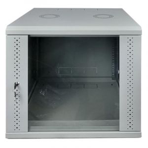 Шафа настінна 9U від EServer. Привабливий зовнішній вигляд, двері із загартованого скла, непомітний сірий колір RAL 7035. У верхній кришці шафи передбачено два місця для встановлення вентиляторів 120 мм. Зовнішня висота складає 503 мм, зовнішня глибина – 500 мм. У шафу можна встановити обладнання завглибшки до 435 мм. Бічні двері – знімні на замках. Здійснено підготовку під заземлення (в усіх частинах шафи встановлено болти під заземлення).