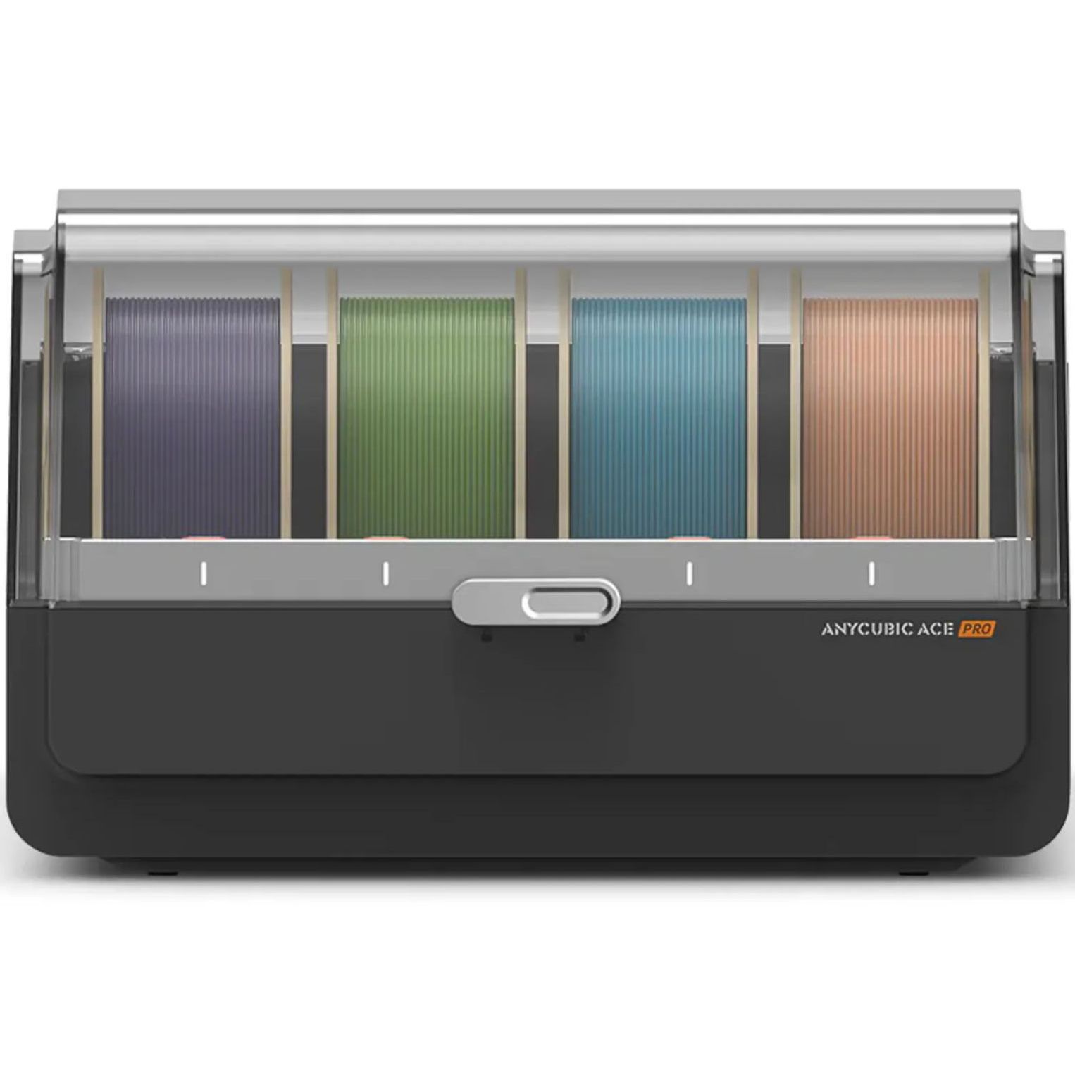 Anycubic ACE Pro – система автоматичного подавання пластикових ниток для друку. Вона дозволяє друкувати кількома кольорами – від 4 до 8 (за умови підключення двох модулів ACE Pro). Розпізнавання кольорів здійснюється за RFID-мітками (функціонал доступний за умови використання фірмових витратних матеріалів). Доступна підтримка реалістичних, унікальних кольорів, створених у рамках співпраці PANTONE та Anycubic – Весняний лист, Тропічна бірюза, Міжзоряна фіалка, Персиковий пух.