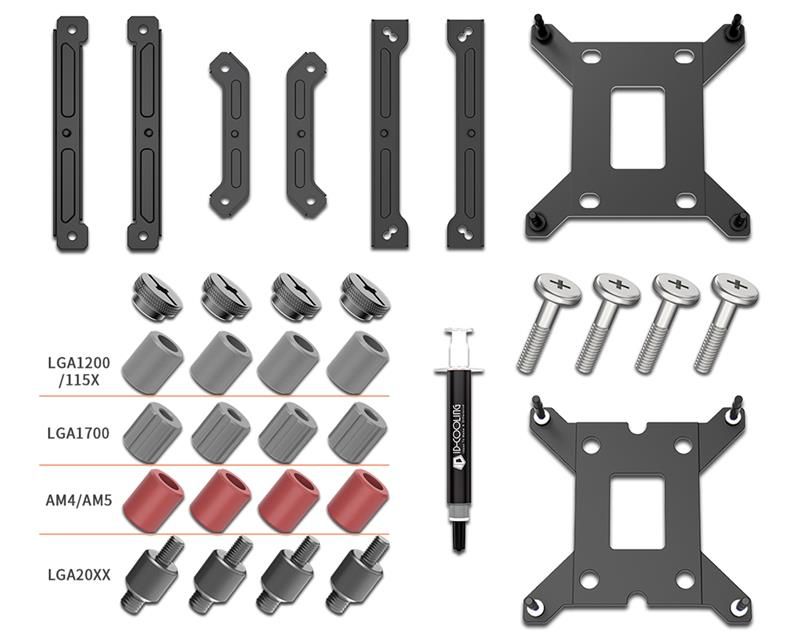 ID-Cooling Dashflow 360 складається з водоблоку з мідною основою та вбудованою помпою на керамічному підшипнику, пари шлангів довжиноюю 465 мм і алюмінієвого радіатора. У комплекті зі СВО постачається три 120-мм вентилятори з підтримкою регулювання швидкості обертання за допомогою ШІМ в діапазоні від 500 до 2000 об/хв.