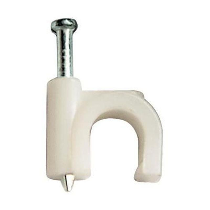 Скоба (кліпса) з цвяхом для кріплення кабелю 6mm біла (пачка 100 шт.)