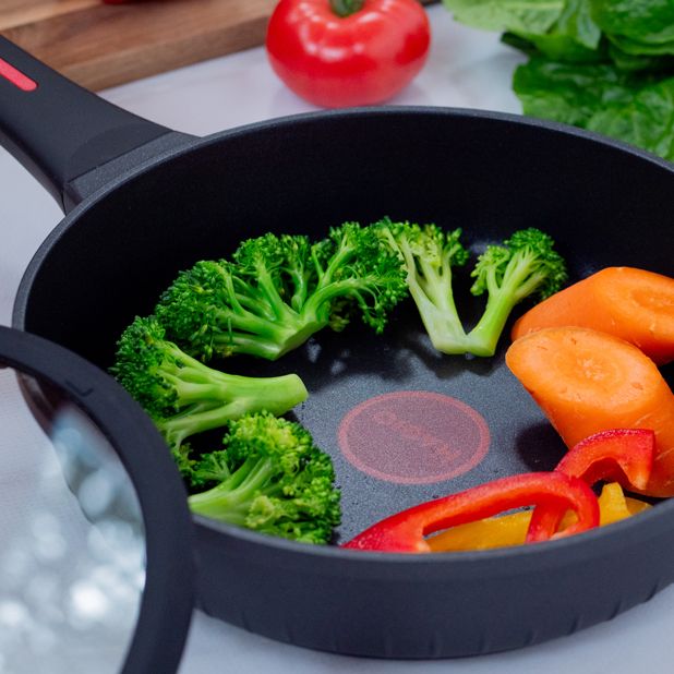 Так, QUICK FRY. У міру нагрівання сковороди змінюється колір індикатора. Як тільки сковорода досягає максимальної температури, індикатор Quick Fry стає повністю червоним, показуючи, що досягнуто рівномірної та оптимальної температури для приготування страв