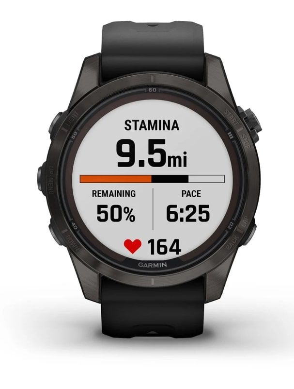З лінзою, що заряджається від сонячної батареї, ваш пристрій працюватиме до 14 днів у режимі розумного годинника за умови використання протягом 3 годин на день під прямим сонцем (50 000 люкс). У режимі GPS з підзарядкою від сонця пристрій тримає заряд до 46 годин (за умови безперервного використання впродовж усього періоду в умовах освітлення 50 000 люкс).