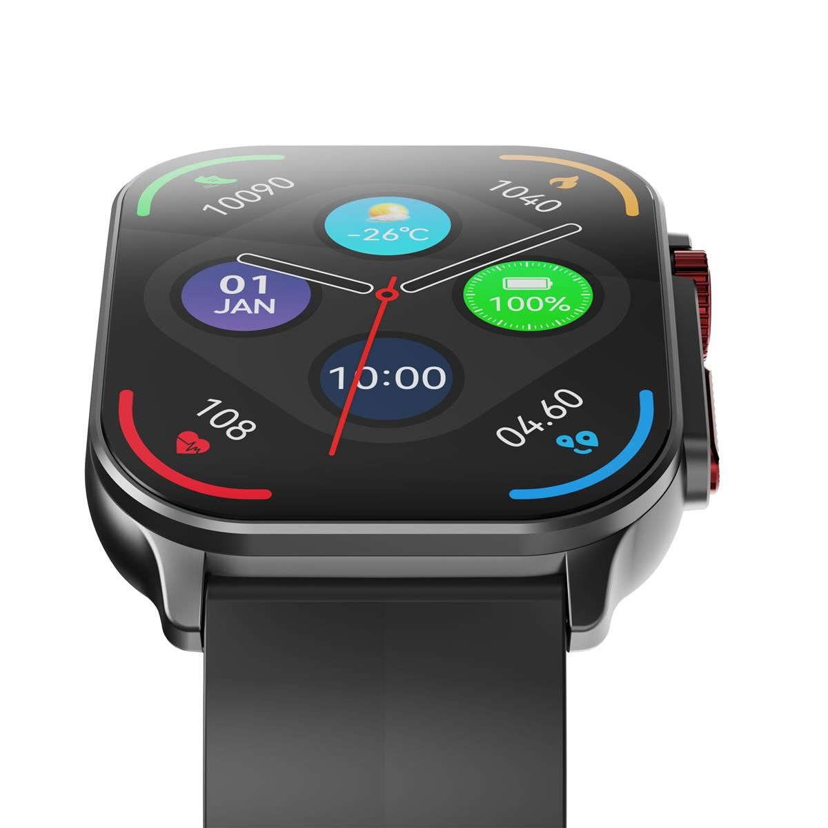 - Тривалий час роботи на одному заряді, що дозволяє використовувати годинник без частих підзарядок