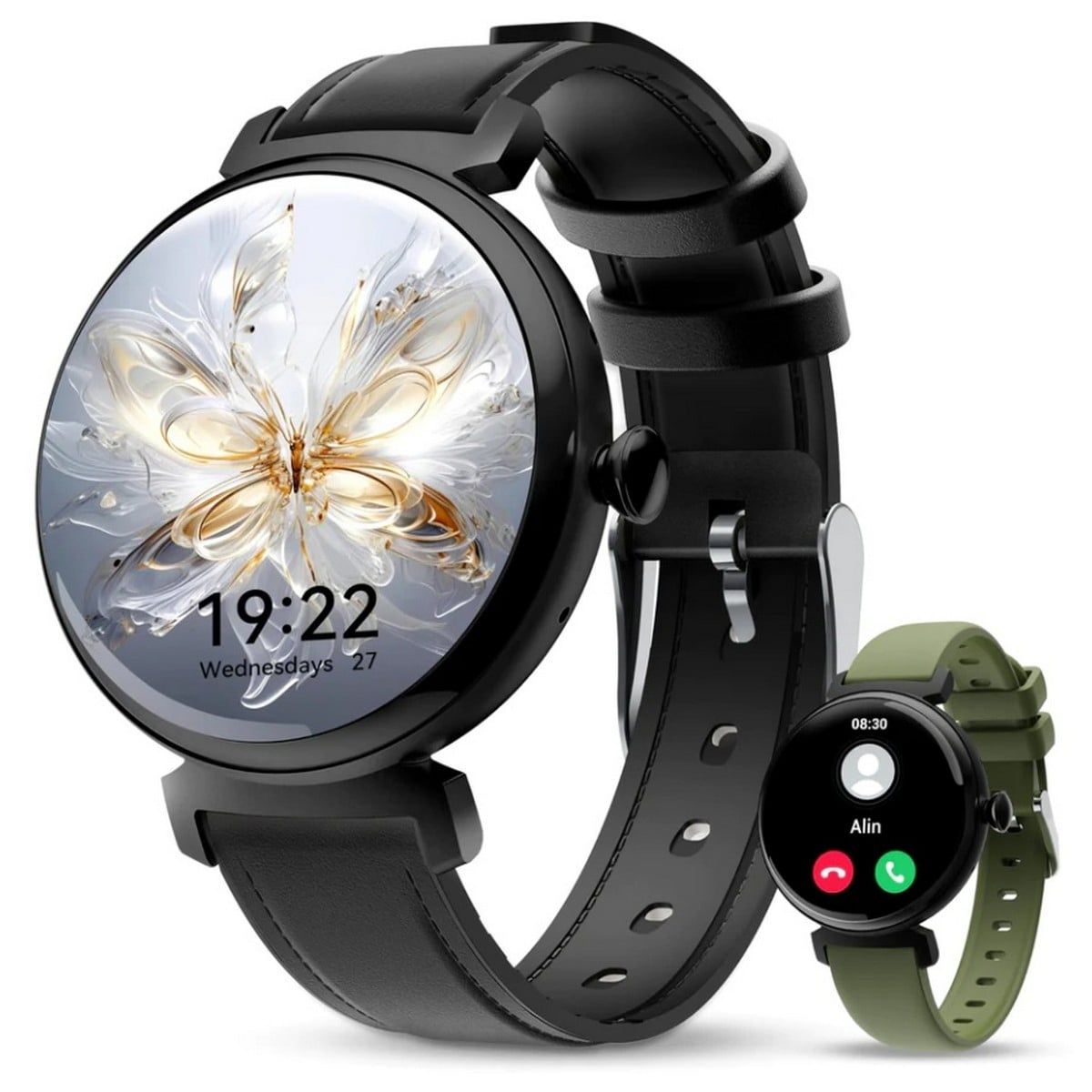 Cмарт-годинник з сенсорним екраном 1,04 дюйма, елегантний екран із вишуканою металевою рамкою годинника, класична конфігурація круглого циферблата, шкіряний ремінець і додатковий силіконовий ремінець у комплекті. Модний і універсальний, функціональний і елегантний аксесуар.