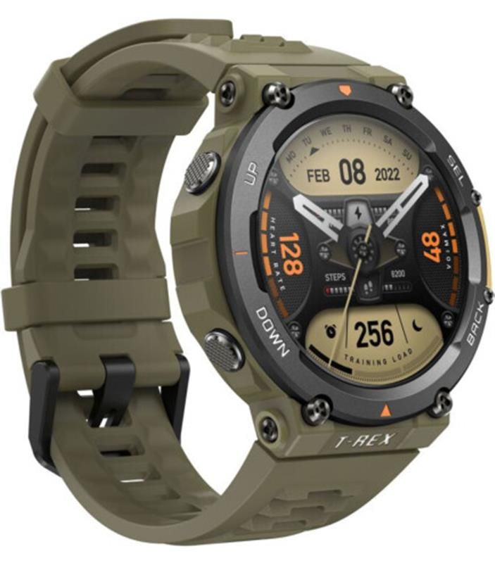 Amazfit T-Rex 2 має великий екран, який полегшує перегляд, життєво важливих для вашої пригоди, даних — чи то під сонцем пустелі, чи міськими ліхтарями, чи в поході при світлі місяця. Матове покриття годинника і безель з металевим напиленням доповнено силіконовим ремінцем, що не вбирає піт, який зберігає годинник сухим і зручним, поки ви протистоїте стихії.