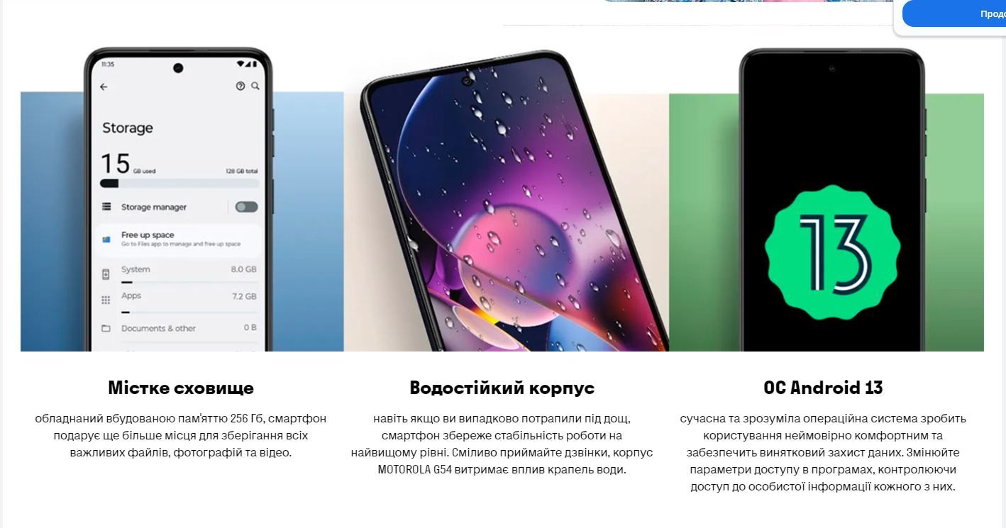Смартфон Moto G54 поєднує у собі ексклюзивний стиль, захист від води та яскраву індивідуальність. Він працює на операційній системі Android 13 і пропонує насолодитися улюбленими серіалами та іграми на Full HD+ екрані діагоналлю 6.5 дюйми. Зі звуком Dolby Atmos ви зможете повністю зануритися в контент. Камера 50 Мп з оптичною стабілізацією, функцією двокамерної зйомки та потужним режимом нічних портретів допоможе створювати лише якісний контент. Підтримка 5G надасть безмежний доступ до мережі для будь-яких потреб.