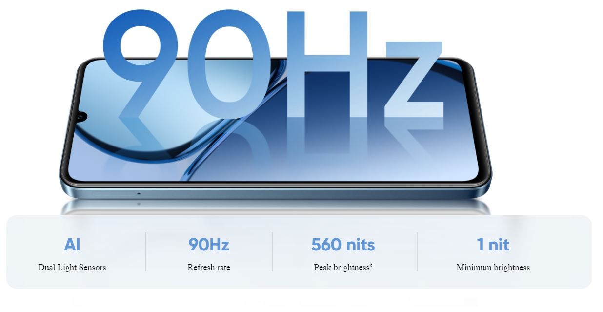 Чудове візуальне сприйняття гарантуватиме 6,74-дюймовий екран HD+. Великий розмір дисплея в поєднанні з подвійними датчиками освітленості зі штучним інтелектом забезпечать оптимальну якість перегляду з чудовою яскравістю та видимістю.