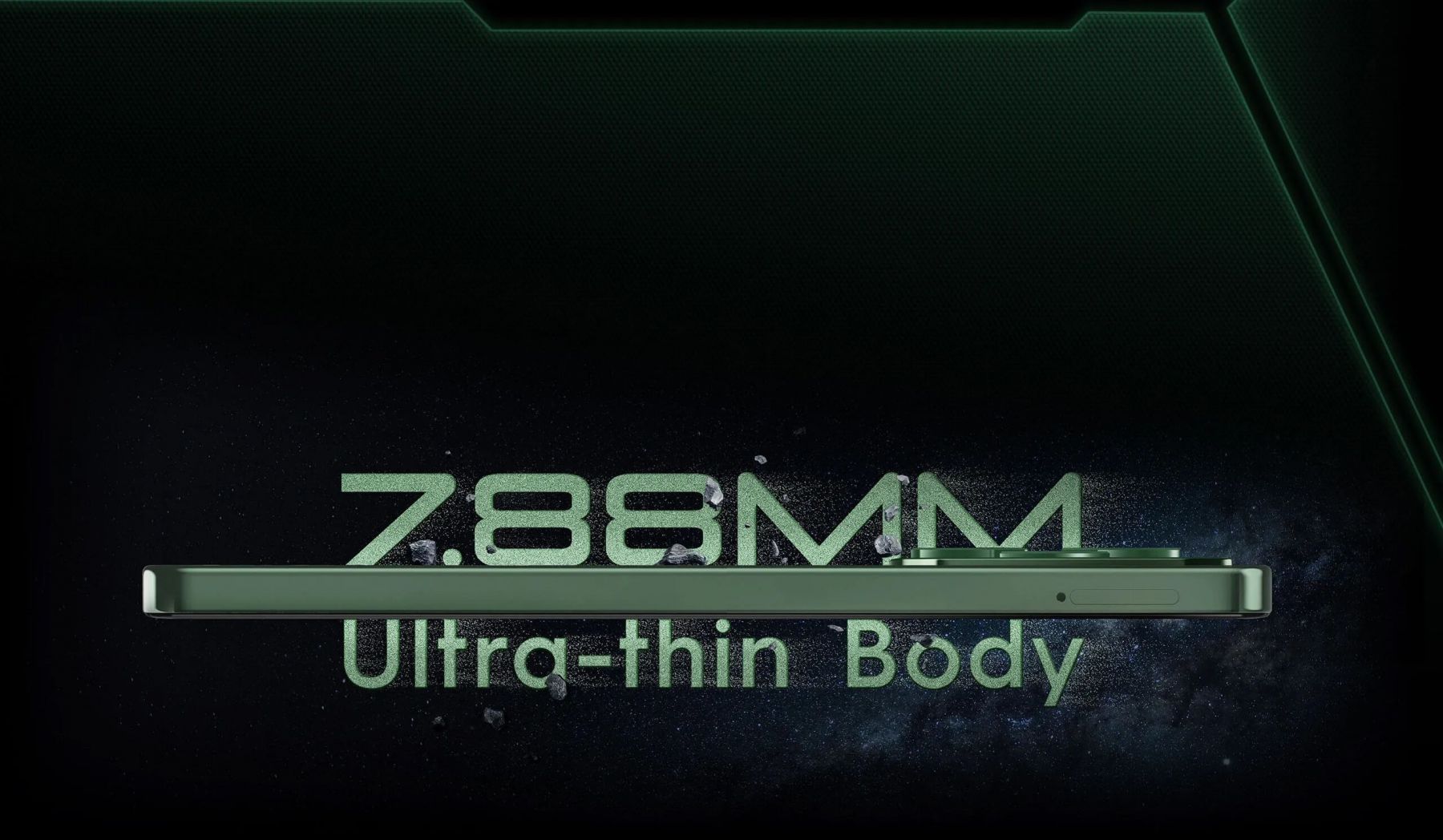 Революційна технологія акумулятора забезпечує тонкий корпус TECNO POVA 6: на 12,4% тонший (7,88 мм) і на 8,6% легший (195 г), ніж у попереднього покоління.