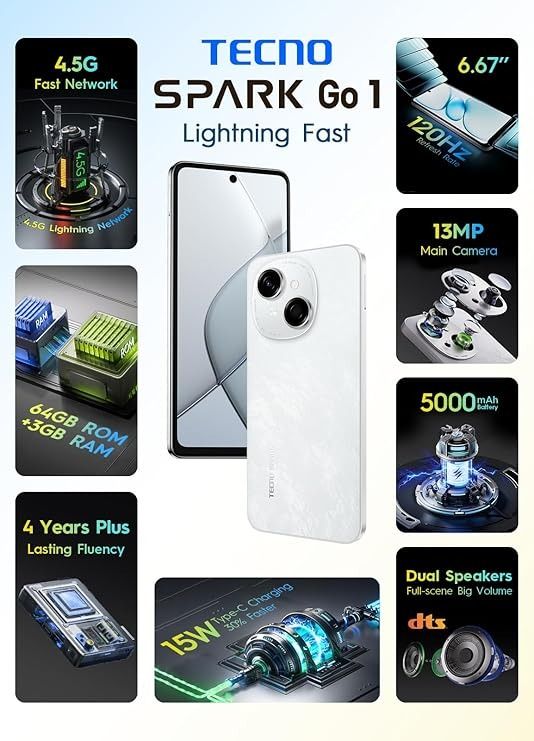 TECNO Spark GO 1 оснащений великим 6.67-дюймовим HD+ дисплеєм, який забезпечує високу якість зображення завдяки роздільній здатності 1600x720 пікселів. Такий екран створює чітке та яскраве зображення, дозволяє насолоджуватися мультимедійним контентом, відео та іграми на новому рівні. Завдяки яскравості 480 ніт дисплей залишається добре читабельним навіть за яскравого денного світла, забезпечуючи комфортне користування в будь-яких умовах. Підтримка частоти оновлення до 120 Гц робить рухи на екрані максимально плавними. Завдяки інтелектуальній системі частота оновлення автоматично підлаштовується під різні сценарії використання, оптимізуючи роботу пристрою та забезпечуючи ефективне енергоспоживання. Це означає, що при перегляді статичних зображень або виконання простих завдань система може знижувати частоту до 60 Гц, зберігаючи енергію, а при динамічних діях, таких як ігри або скролінг сторінок, частота збільшується до 120 Гц для більш плавного та приємного враження від користування. Таким чином, екран TECNO Spark GO 1 поєднує у собі високу якість зображення, оптимальну яскравість та розумну частоту оновлення, роблячи цей смартфон ідеальним вибором для тих, хто цінує як зручність, так і енергоефективність.