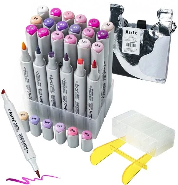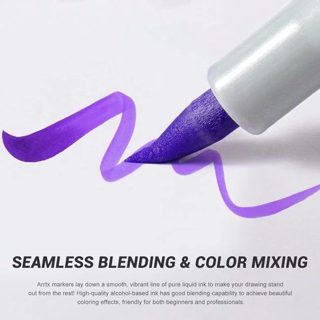 Професійні художні маркери: всі маркери Arrtx оснащені якісними наконечниками з міцного волокна, високоякісним чорнилом на спиртовій основі для досягнення красивих колірних ефектів при малюванні, фарбуванні, змішуванні, техніці затінення та багато іншого.