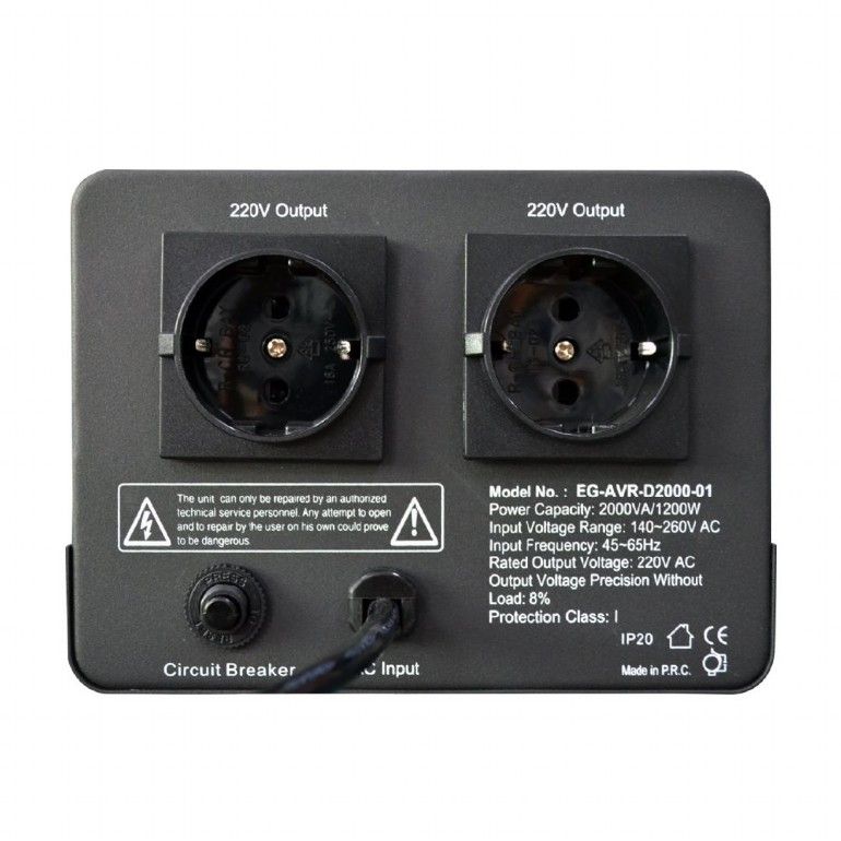Автоматичний регулятор напруги EnerGenie 220 В 2000 ВА призначений для роботи з побутовими та промисловими електроприладами потужністю до 1200 Вт від мережі змінного струму 220 В/50 Гц.