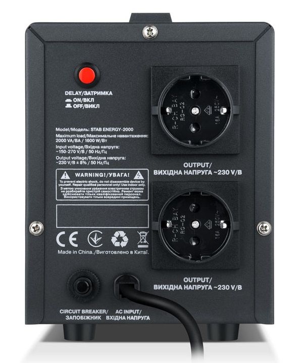 Стабілізатор напруги мережі REAL-EL STAB ENERGY-2000 призначено для забезпечення якісним і стабільним електроживленням різних споживачів в умовах великих за значенням та тривалістю відхилень напруги електричної мережі від номінальної, захисту пристроїв-споживачів від перевантаження, від дії високочастотних та імпульсних перешкод.