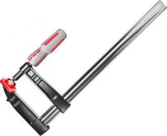 Струбцина F-типу виготовлена ??з нержавіючої нікельованої сталі, що додає міцність і довгий термін служби інструменту.