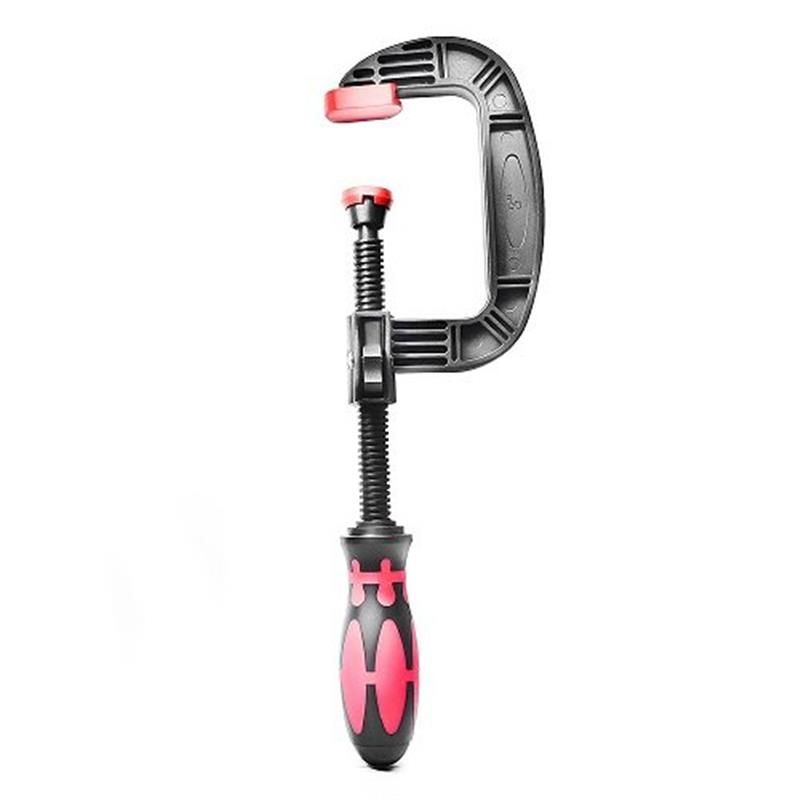 Струбцина G- типу Stark 75 мм - ручний затискної інструмент для надійної фіксації металевих, дерев’яних, пластикових, скляних і ін. Матеріалів. G-подібна форма дозволяє затискати деталі до 75 мм. Прогумовані губки дбайливо ставляться до поверхні, не дряпаючи і не продавлюючи її в процесі затиску. Спіральний механізм дає можливість контролювати силу натискання на деталь. На корпусі передбачена кнопка фіксатор для надійного затиску деталей. Зручна рукоятка з прогумованими вставками не прослизає під час закручування. Для зручного використання в важкодоступних місцях і в будь-якому зручному положенні рукоятка згинається в різні боки, що спрощує процес затиску. Струбцина G- типу Stark 75 мм підходить для робіт з виготовлення меблів, ремонту деталей, і інших робіт, де необхідний надійний затиск.