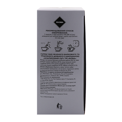 Суміш чаю Rioba Альпійський луг зеленого трав`ян 25*1.5г/уп