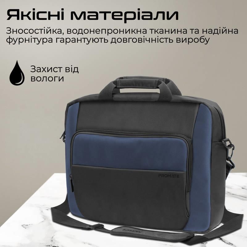 Limber-MB від Promate - зручна та містка сумка для 15.6" ноутбука, яка стане надійним компаньйоном у ділових та повсякденних поїздках. А м’які вставки, великі відсіки та регульований ремінь забезпечать комфортне використання.