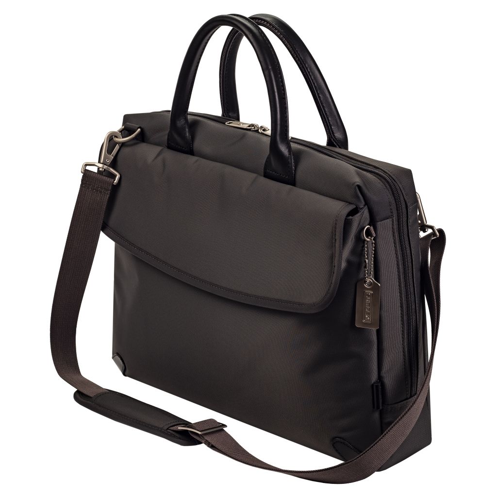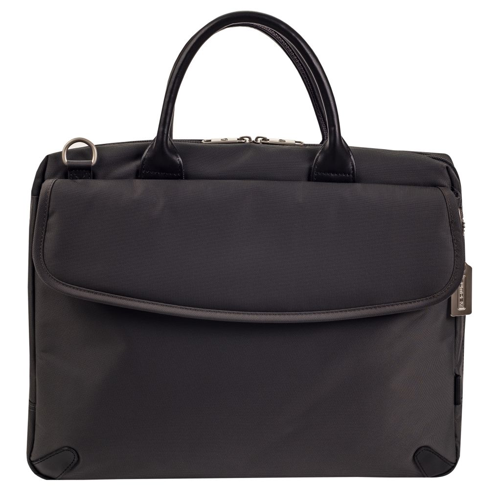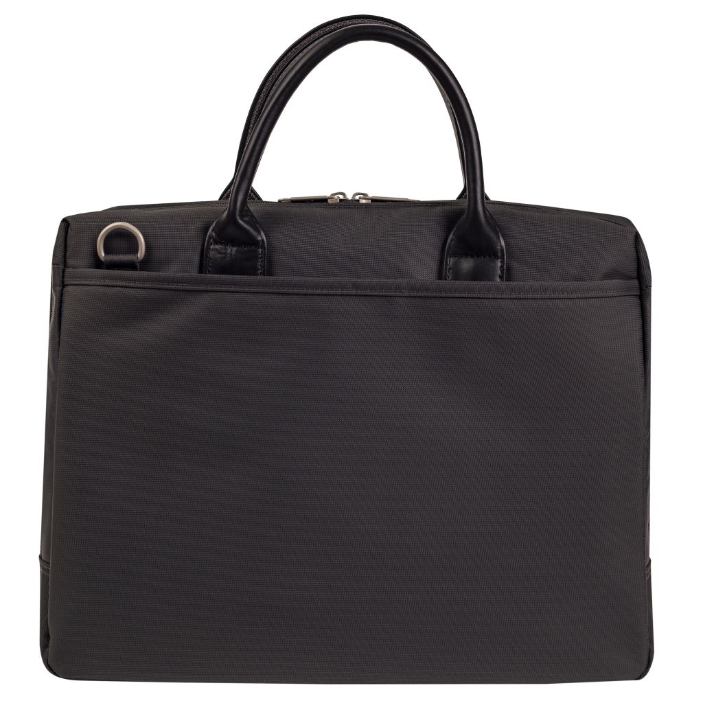 У виробництві даної сумки використовувався водовідштовхувальний нейлон Jacquard високої щільності із застосуванням в дизайні обробки з натуральної шкіри. Фурнітура з матового нікелю, а також двонаправлені нейлонові «блискавки», відрізняють кожний виріб легкістю і міцністю, що так важливо для жінки. Передбачено вертикально завантажувати захищене відділення для ноутбука діагоналлю 15,6 " з кишенями для CD і документів. Внутрішня м"яка підкладка сумки сірого кольору. Багатофункціональні кишені-органайзери, легкодоступна передня кишеня на «блискавці», зовнішня кишеня для паперів - ці функціональні можливості даної сумки дозволяють розмістити всі необхідні аксесуари без будь-яких проблем.Для перенесення моделі NON-915 передбачені зручні шкіряні ручки, а також знімний ергономічний плечовий ремінь, забезпечений м"якою «подушкою», яка створює ефект не ковзання і рівномірно розподіляє вагу.